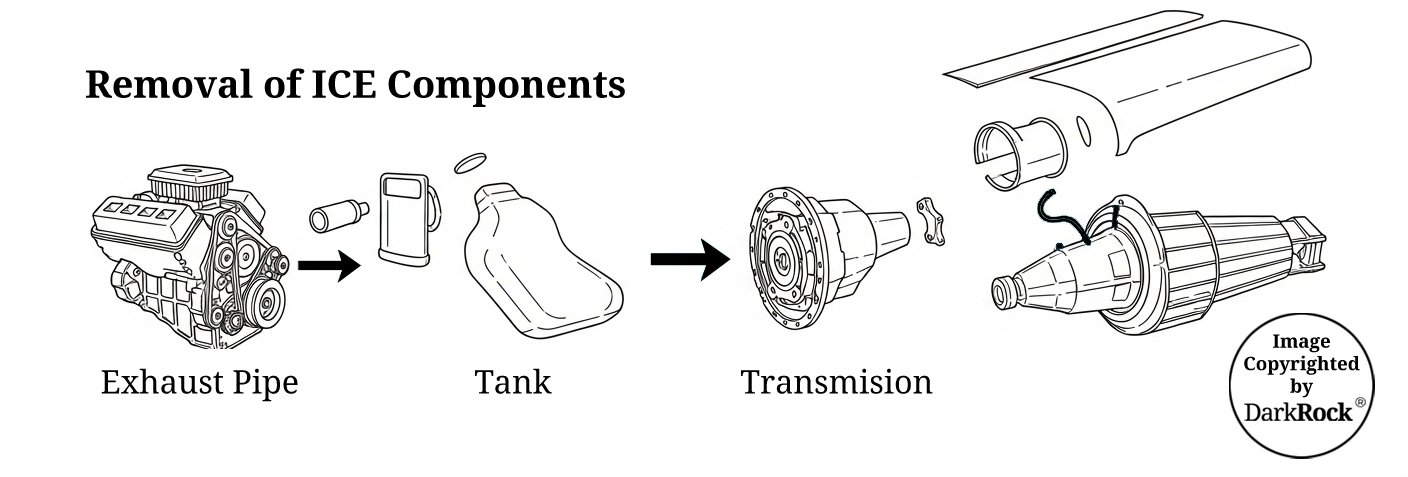 DarkRock enables the transition from internal combustion engines (ICE) to electric mobility through advanced conversion engineering.